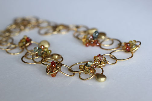 Alla's multifaceted education and extensive world travel fuel her creativity and lead her to experiment with hand fabrication techniques, such as granulation, fusing, metal forming, and chain weaving. High carat metals can be unpredictable, so Alla allows the nature of the materials to influence the final design of each handcrafted piece.