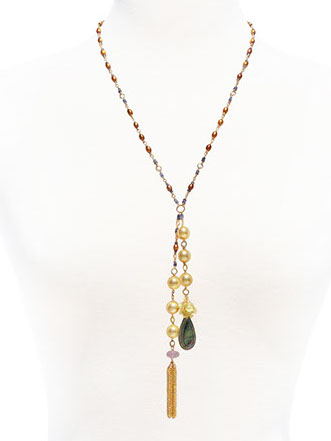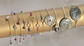 Delanacre is known for beautiful jewelry featuring engraved and polished Tahitian pearl and mother of pearl as well as pieces featuring Swarovski crystals and gem stones including citrine, peridot and amethyst.